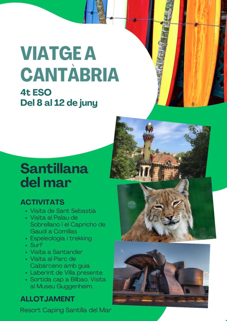 Del 8 al 12 de juny, els alumnes de 4t d’ESO ens anem a Santillana del Mar.